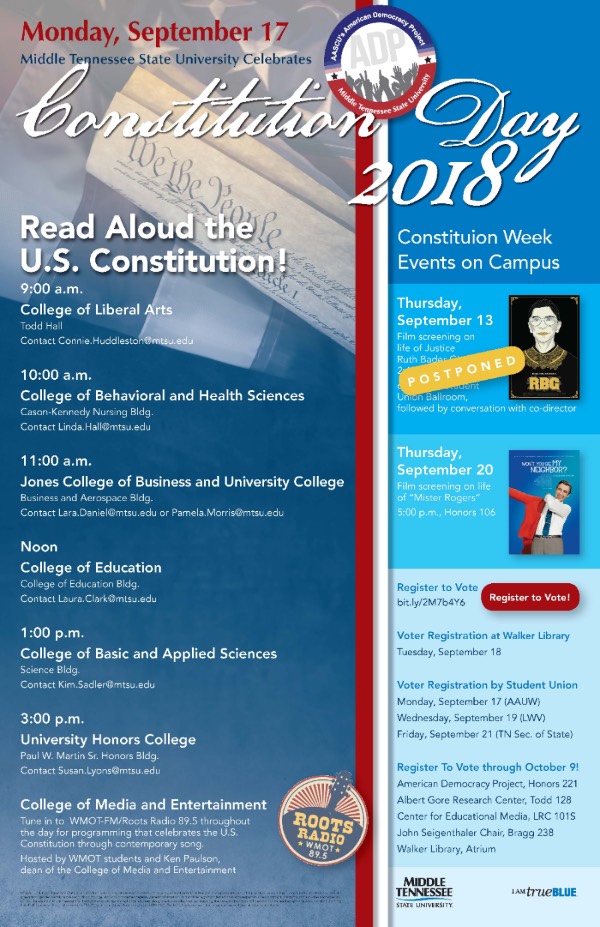 - MTSU celebrates Constitution Day 2019 with readings, voter registration