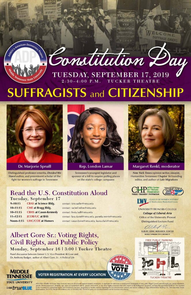 - Suffragists panel celebrates voting, urges vigilance at MTSU Constitution Day 2019